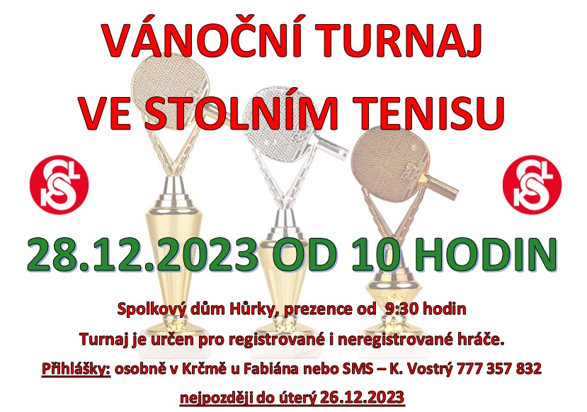 Vánoční turnaj ve stolním tenisu pro registrované i neregistrované hráče se konal 28.12.2023. Vítězem se stejně jako loni stal Marek Štochl.